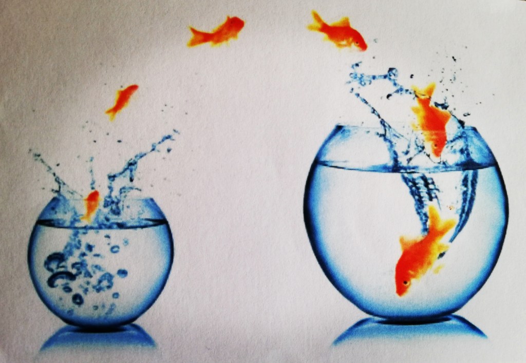 Tourner en rond et ne plus sentir un espace suffisant demande de prendre son courage à deux mains pour changer de mouvement, s’ouvrir sur un autre monde et découvrir que cela peut être bien mieux ailleurs, en voyant plus grand.